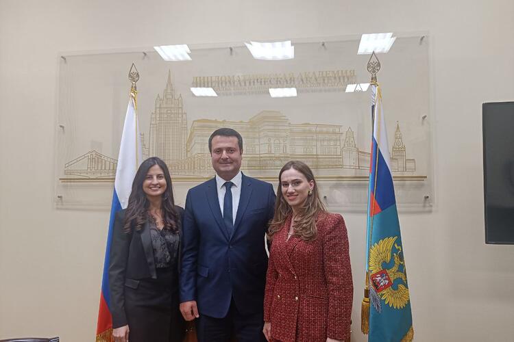 On October 24, in Moscow, on the margins of the 8th Forum of Young Diplomats, which is held on the sidelines of the International Cooperation Forum dedicated to the 100thanniversary of people’s diplomacy, a trilateral meeting was held between delegation of the Council of Young Diplomats of the Ministry of Foreign Affairs of the Republic of South Ossetia, the Council of Young Diplomats of the MFA of the Republic of Abkhazia, headed by the Chairman of the Council PatarayaA. G. and representatives of the Council of Young Diplomats of the Russian Foreign Ministry, led by the Chairman of the Council Akopyan E. M.