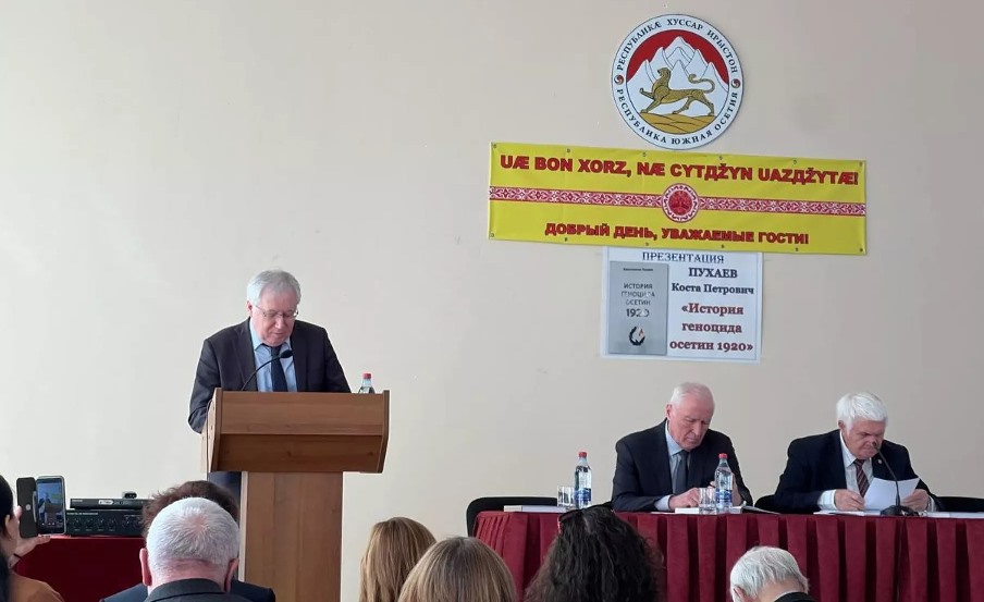 On November 21, Minister of Foreign Affairs of the Republic of South Ossetia, A. M. Dzhioev attended the presentation of the book “The History of the Ossetian Genocide of 1920” by Konstantin Petrovich Pukhaev, a prominent politician and scientist, Candidate of Historical Sciences, which was held at the Z. N. Vaneev South Ossetian Scientific Research Institute and was timed to the Day of Courage and National Unity.