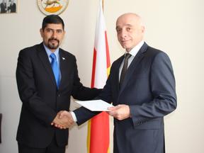Andrey Tskhovrebov, the Acting Foreign Minister of the Republic of South Ossetia, hosted a meeting with Juan Ernesto Vásquez Araya, the Ambassador Extraordinary and Plenipotentiary of the Republic of Nicaragua in the Republic of South Ossetia, who handed copies of credentials, on July 11.