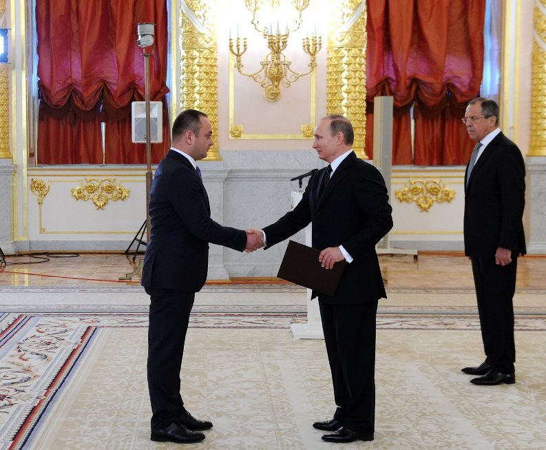 Znaur Gassiev, the Ambassador Extraordinary and Plenipotentiary of the Republic of South Ossetia in the Russian Federation, delivered credentials to Vladimir Putin, the President of the Russian Federation, on November 26, 2015.