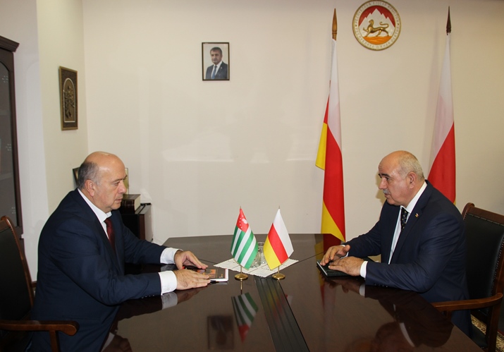 Dmitriy Medoev, the Minister of Foreign Affairs of the Republic of South Ossetia, hosted a meeting with Alan Elbakiev, the Ambassador Extraordinary and Plenipotentiary of the Republic of Abkhazia in the Republic of South Ossetia, on October 20, 2017.