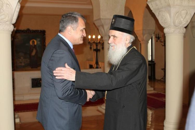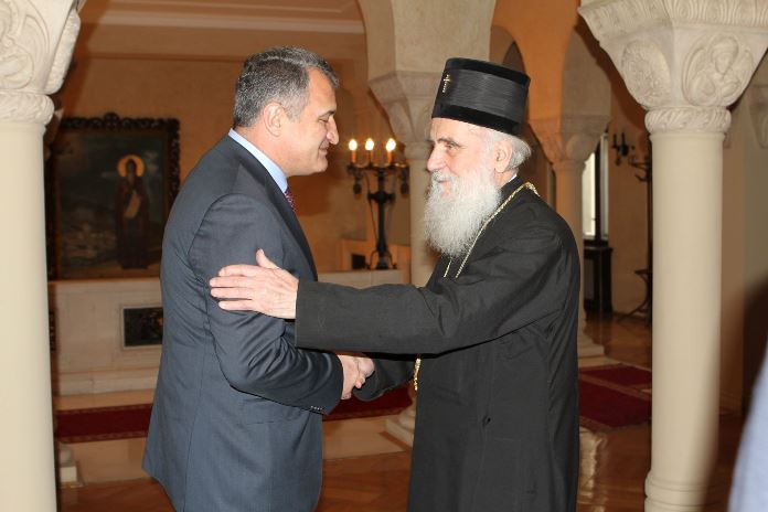 His Holiness Patriarch Irinej of Serbia hosted in his residence a meeting with Anatolii Bibiliv, the President of the Republic of South Ossetia, on January 12, 2018.