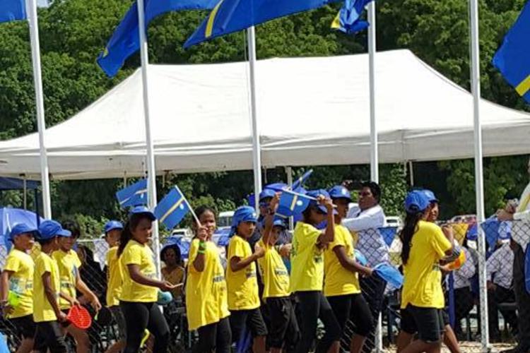Official events started with the ceremony of raising the National Flag, accompanied by the National Anthem of the Republic of Nauru, performed by the church choir at the square in front of the Government House.