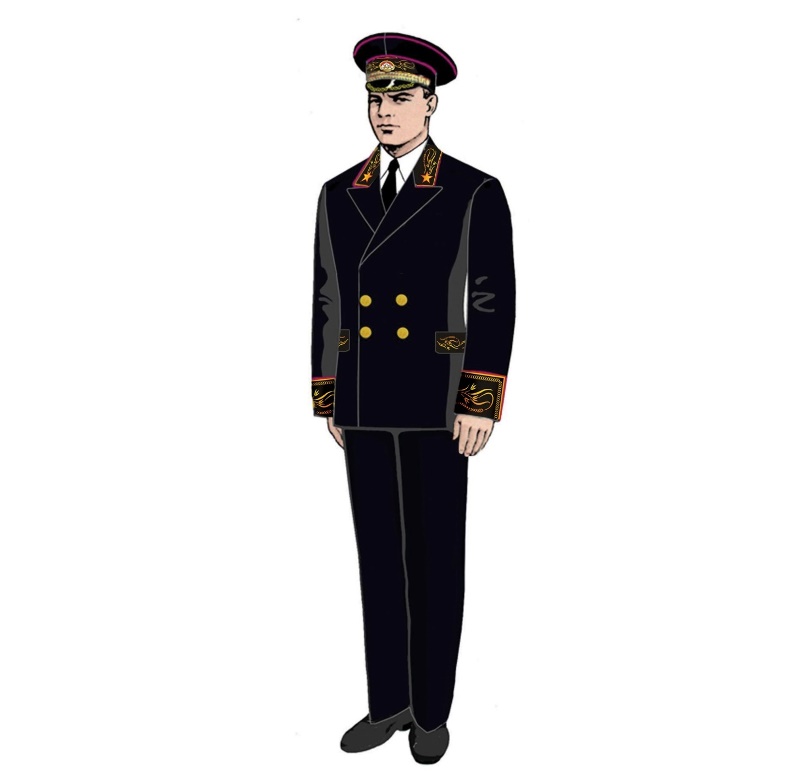 Пиджак двубортный шерстяной черный, с позолоченным шитьем установленного образца на воротнике, клапанах карманов и обшлагах.