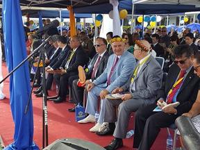 Official events started with the ceremony of raising the National Flag, accompanied by the National Anthem of the Republic of Nauru, performed by the church choir at the square in front of the Government House.