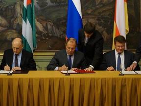 A working meeting between the acting Minister of Foreign Affairs of Republic of South Ossetia D.G. Sanakoev, Minister of Foreign Affairs of Russian Federation S.V. Lavrov and Minister of Foreign Affairs of Abkhazia V.A. Chikirba took place in Moscow on 25 April 2014.