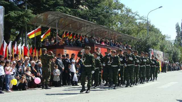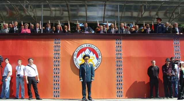 20 сентября Президент Республики Южная Осетия Эдуард Кокойты с членами Правительства и Парламента Республики принял торжественный военный парад.
