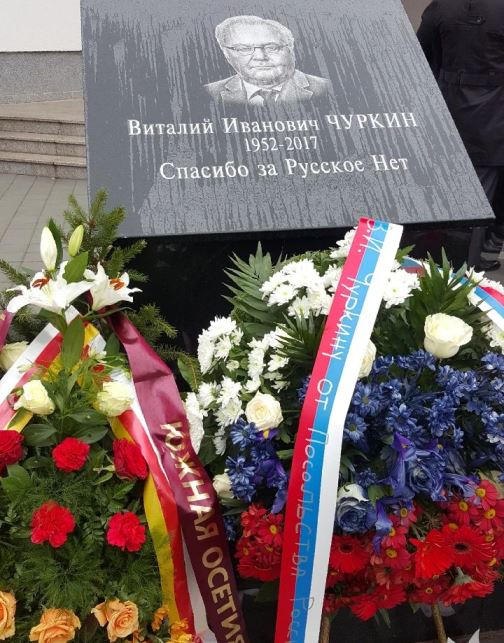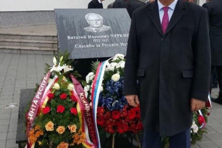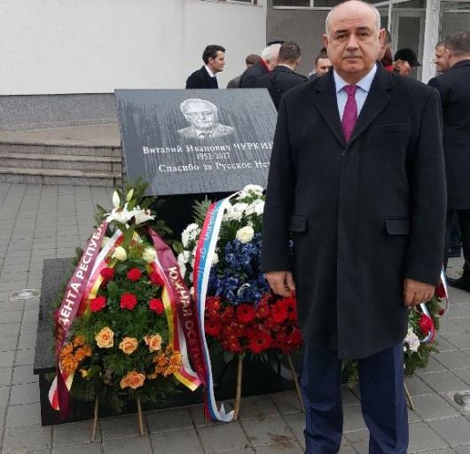 Далее Президент Республики Южная Осетия Анатолий Бибилов и члены югоосетинской делегации возложили венок к памятнику Виталия Чуркина – постпреда РФ при ООН, который был установлен в Восточном Сараево в дань уважения безвременно ушедшему российскому дипломату, жизнь которого была тесно связана с событиями на Балканах. В частности, в 2015 году Виталий Чуркин в Совбезе ООН наложил вето на проект резолюции по Сребренице, признающей события 1995 года геноцидом.