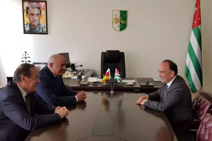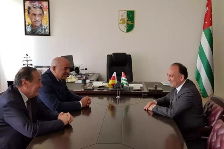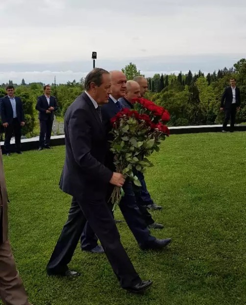 Дмитрия Медоева сопровождает Чрезвычайный и Полномочный Посол Республики Южная Осетия в Республике Абхазия Олег Боциев.