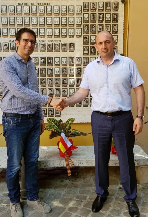 25 мая в завершении визита в Итальянскую Республику Министр иностранных дел Республики Южная Осетия Д.Н. Медоев и Глава Администрации г. Цхинвал А.Г. Кочиев в сопровождении мэра г. Градара Филиппо Гаспери посетили Мемориал погибшим во время Второй мировой войны партизанам провинции Пезаро и возложили цветы к памятной доске.