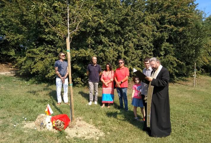 Рядом с «Деревом Мира» – деревом грецкого ореха, которое было высажено в память о жертвах грузинской агрессии в парке Мiralfiori, группа друзей Южной Осетии почтила память погибших во время нападения грузинских войск на спящий город 8 августа 2008 года минутой молчания.