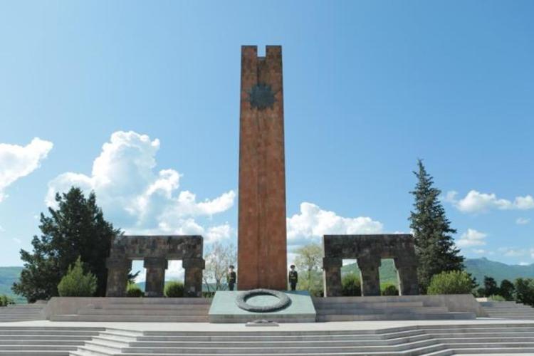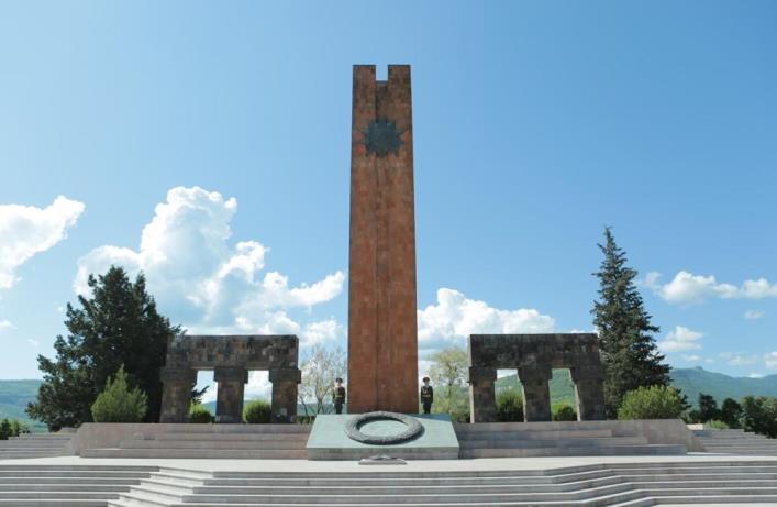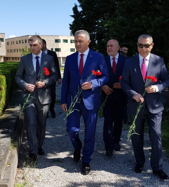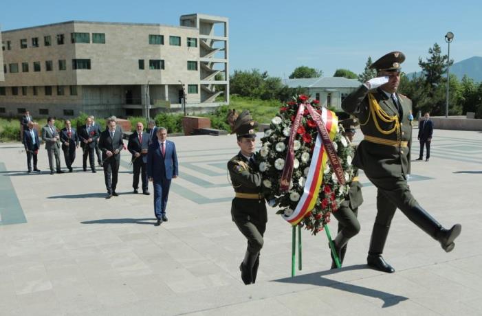 Члены делегации Южной Осетии возложили венок к мемориальному комплексу в Степанакерте и цветы к могилам защитников Арцаха.