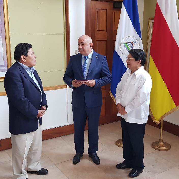 В знак особых заслуг в становление и укрепление межгосударственных отношений между Южной Осетией и Никарагуа Министр иностранных дел Республики Никарагуа Денис Монкада вручил Министру иностранных дел Республики Южная Осетия Дмитрию Медоеву орден «Хосе Т. де Марколета» (Orden Jose T. de Marcoleta).