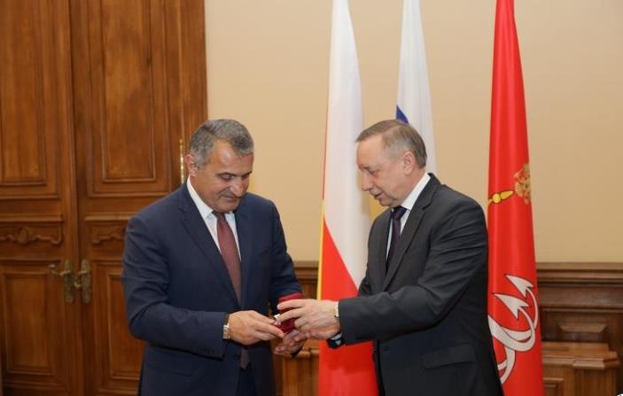Губернатор Петербурга также выразил благодарность осетинскому народу, который защищал город на Неве в годы Великой Отечественной войны. В честь 75-летия полного освобождения Ленинграда от фашистской блокады Александр Беглов вручил Анатолию Бибилову памятную медаль.