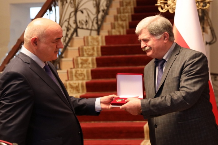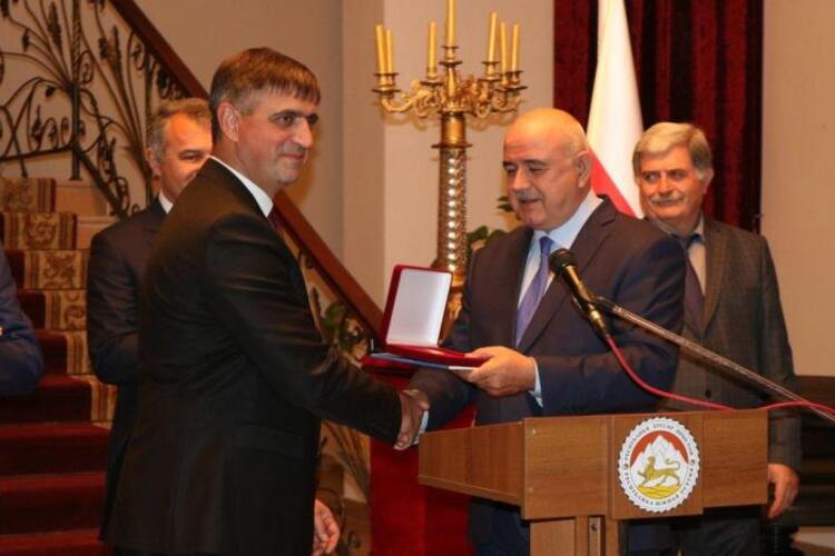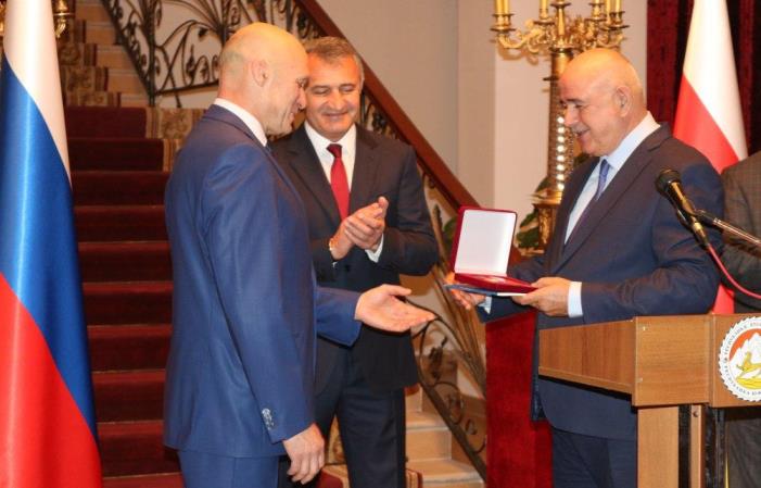 Министр иностранных дел Южной Осетии Дмитрий Медоев вручил Президенту Южной Осетии Анатолию Бибилову медаль «Зураб Магкаты. Первый Посол Осетии в Петербурге» под номером №1.