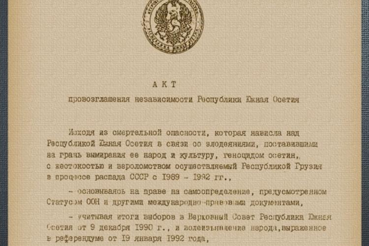 29 мая 1992 года Верховный Совет Республики принял Акт о провозглашении независимости Южной Осетии.