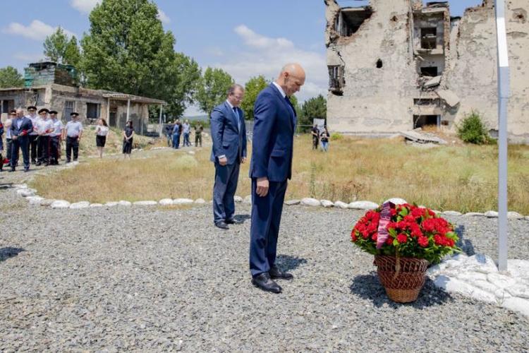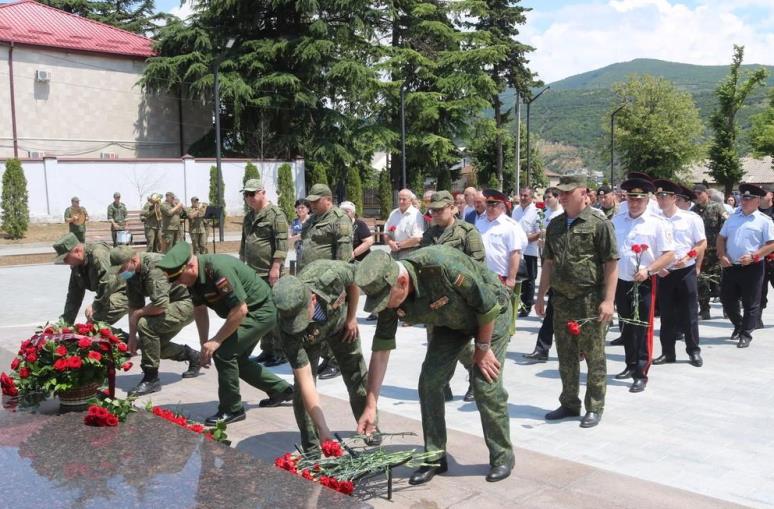 Состоялась церемония возложения цветов к Монументу Защитникам Отечества, Поклонному кресту у стен сгоревшей в 2008 году казармы российского миротворческого контингента, памятнику Героя России Дениса Ветчинова, памятнику погибшим миротворцам на территории Пограничного управления ФСБ РФ в РЮО, Стеле памяти солдат и офицеров миротворческих сил.