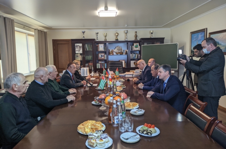 На встрече также присутствовали Чрезвычайный и Полномочный Посол Южной Осетии в Абхазии О.И. Боциев, Советник Министра иностранных дел Южной Осетии С.Ю. Тадтаев, Заместитель Министра иностранных дел Абхазии И.В. Тужба, деканы факультетов АГУ.