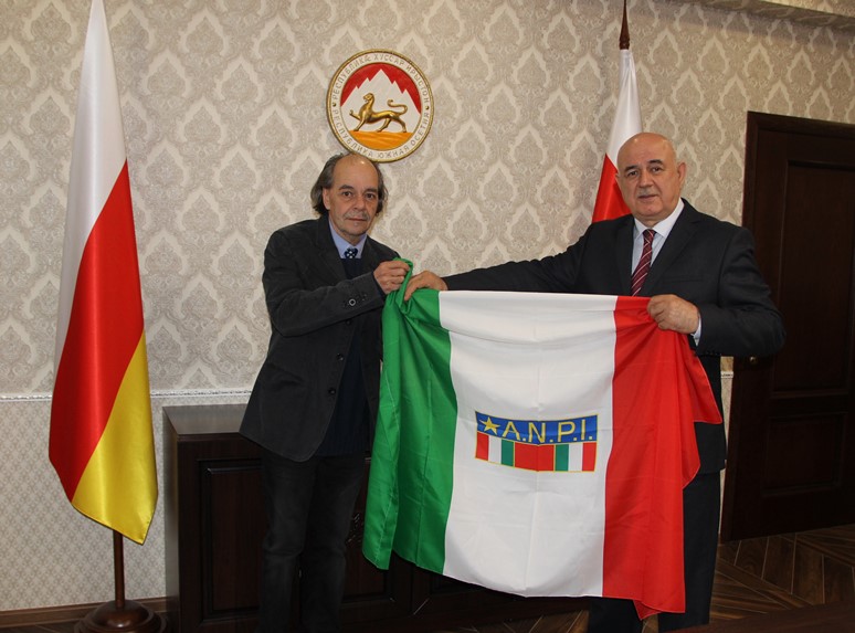 В завершении встречи Мауро Мурджиа преподнес Дмитрию Медоеву от имени руководства Ассоциации итальянских партизан-антифашистов флаг этой организации.