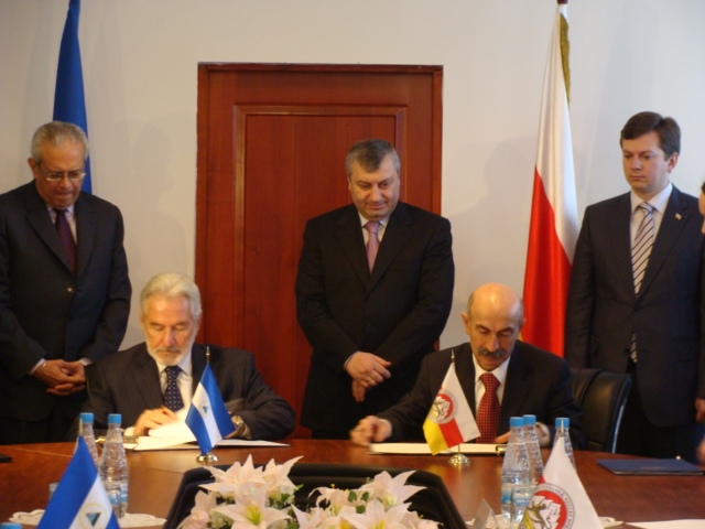 Министр иностранных дел Республики Южная Осетия Мурат Джиоев и Министр иностранных дел Республики Никарагуа Самуэль Сантос Лопес подписали Совместное Коммюнике об установлении дипломатических отношений между Республикой Южная Осетия и Республикой Никарагуа и Протокол о консультациях между Министерством иностранных дел Республики Южная Осетия и Министерством иностранных дел Республики Никарагуа.