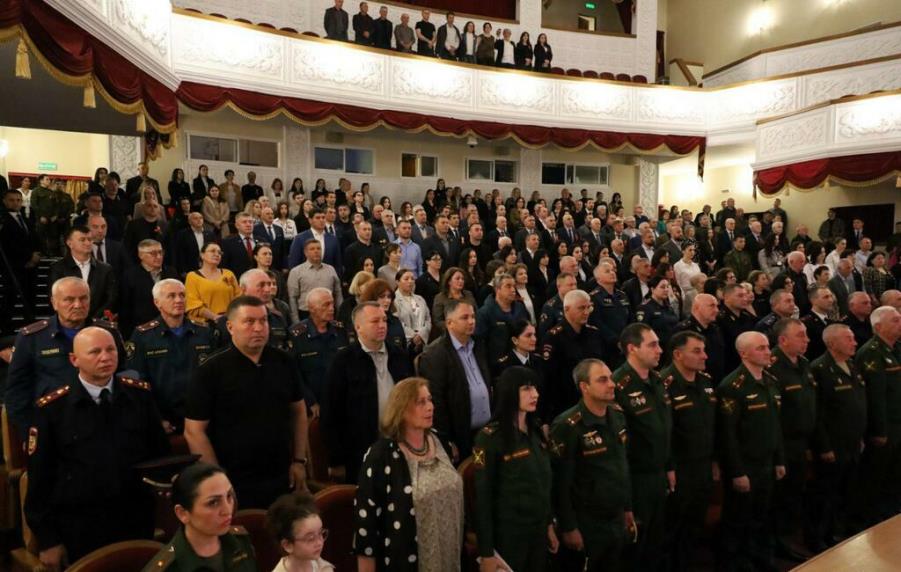 В мероприятии, которое прошло в Юго-Осетинском Государственном драматическом театре им. К.Л. Хетагурова, приняли участие Руководство Республики во главе с Президентом Аланом Гаглоевым, Посол России в Южной Осетии Марат Кулахметов, директор Московского монетного двора Андрей Иванцов, ветераны тыла и родственники ветеранов ВОВ.