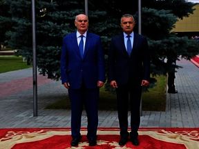 Для торжественной встречи у парадного входа Администрации Президента был выстроен почетный караул, подняты государственные флаги Республики Южная Осетия и Республики Абхазия, исполнены гимны двух стран.